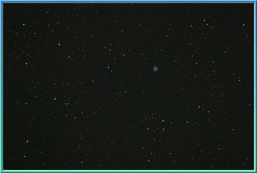 Im Zentrum des Nebels befindet sich ein Weißer Zwergstern mit einer Temperatur von ca. 70.000 °C. Aufnahmedaten: 8 Zoll F6 Newton auf HEQ5 Belichtungszeit 30s Darkframeabzug 5 Bilder gemittelt und dann leicht den Kontrast angehoben und minimal geschärft. |