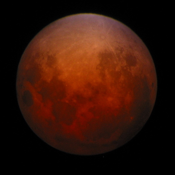 | Die Rotfärbung kommt von der Streung des Lichts in der Ersathmosphäre. Der selbe Effekt wie beim Sonnenuntergang oder Monduntergang, wenn die Kugeln rot werden. Das Licht muß dann einen langen Weg durch die Lufthülle zurücklegen und dabei färbt es sich rot. |