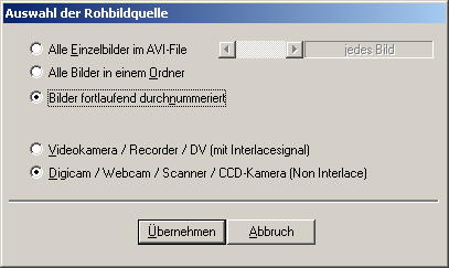 | Unter Punkt 1 Rohbildquelle - Bilder fortlaufend nummeriert wählen |
